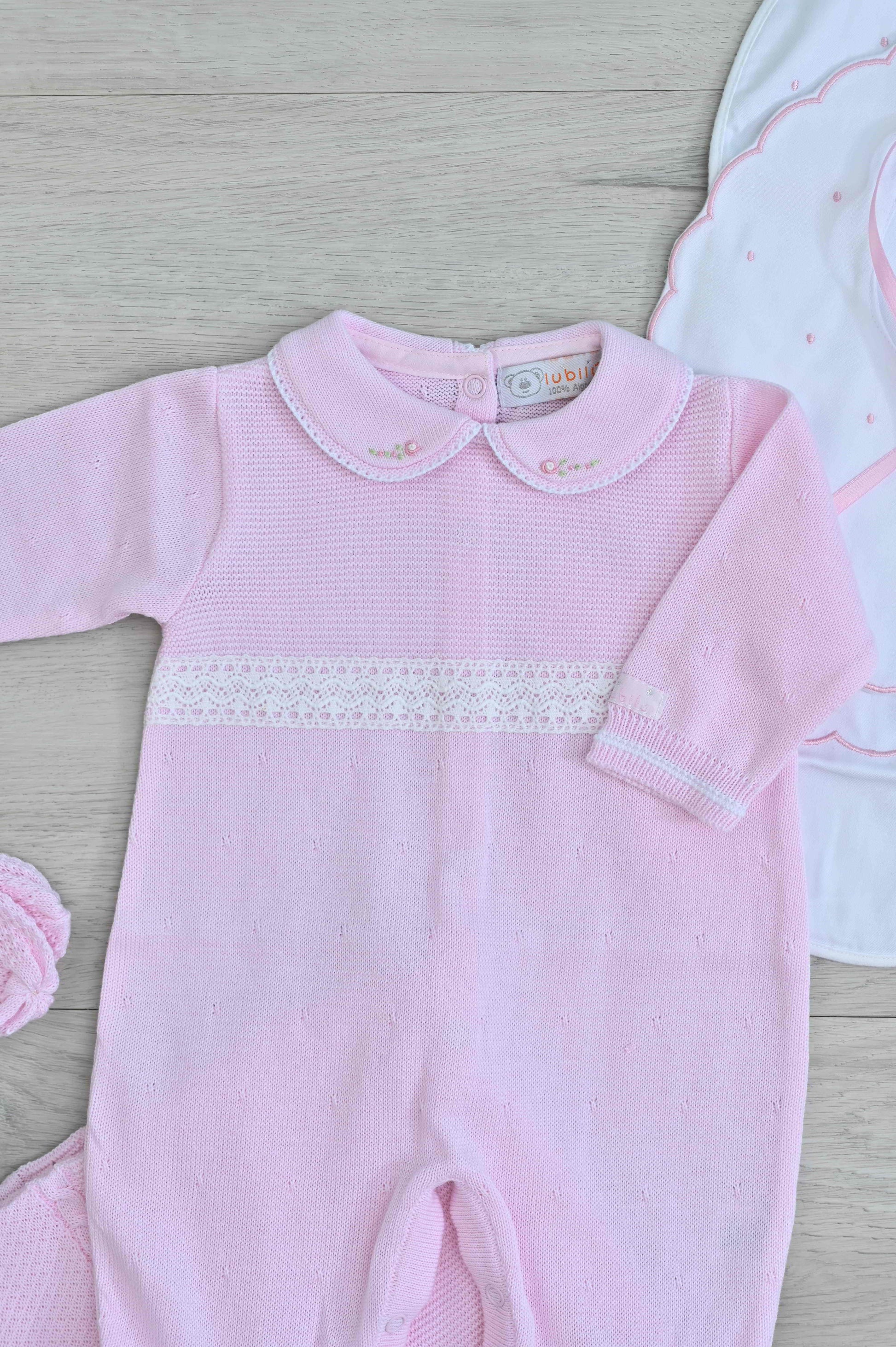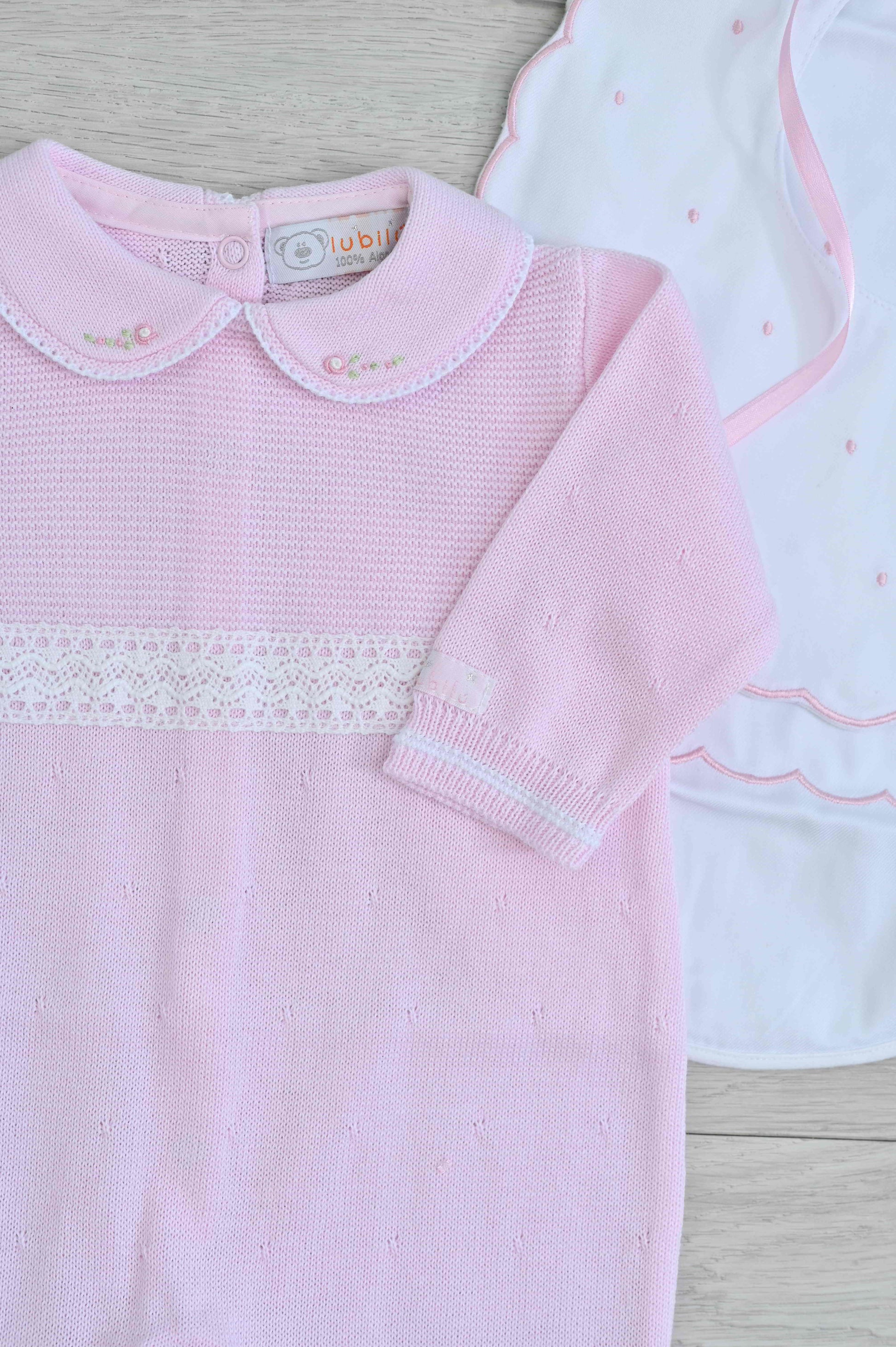 A timeless newborn outfit adorned with handmade rococo embroidery and refined details. Soft, elegant, and perfect for your baby’s first special outing.